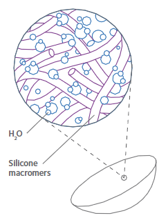 The molecular structure of Aquaform® Technology lens material provides not only uniform wettability creating a smooth lens surface but also natural wettability. Other lenses can come with artificial coatings and wetting agents that dissipate over time. The silicone macromers in Aquaform® Technology lenses lock water into the lens keeping them moist even after periods of extended wear.